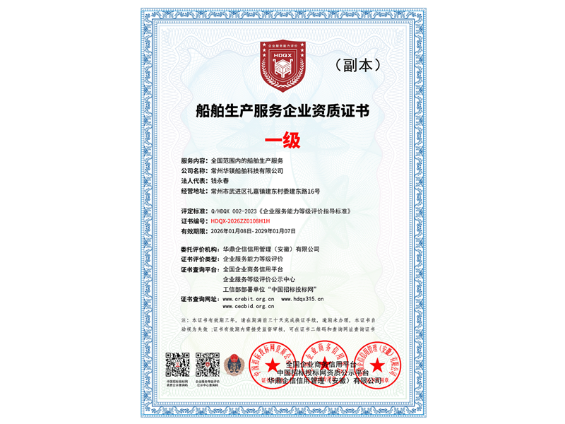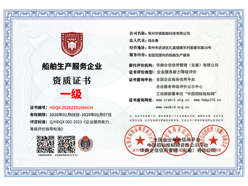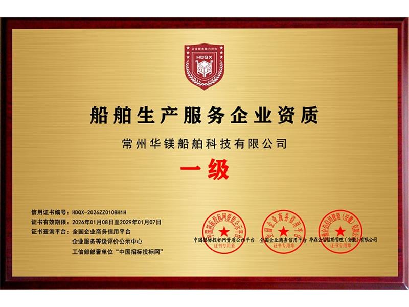 船舶生產(chǎn)服務(wù)企業(yè)資質(zhì) 一級